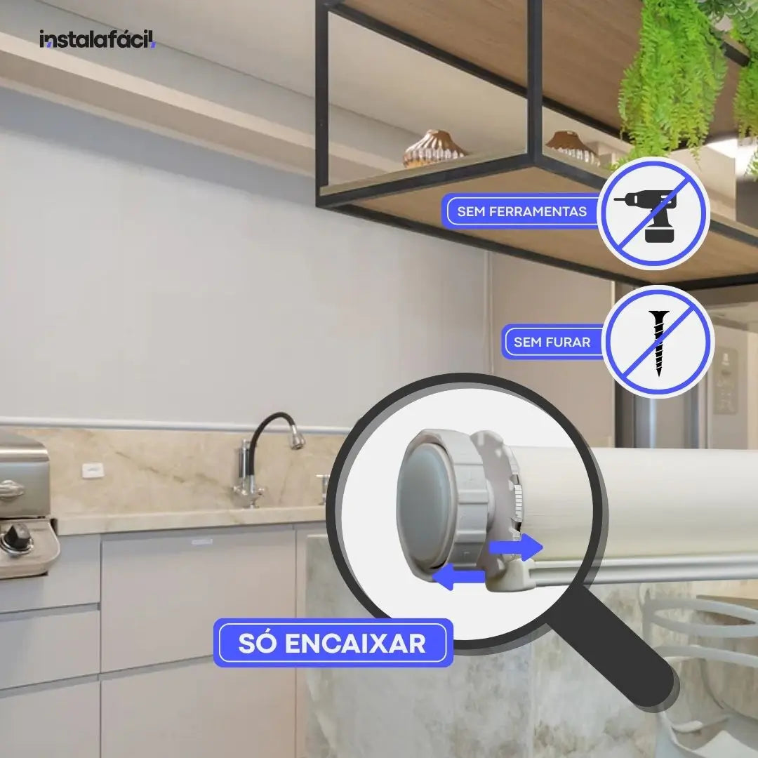 A Persiana Rolô Tela Solar 5% Instala Fácil une design moderno e funcionalidade inteligente. Produzida em tecido de tela solar com abertura de 5%, filtra a luz natural, reduz o calor e preserva a visibilidade externa durante o dia. Ideal para ambientes iluminados e sofisticados, sua instalação é feita sem furos ou ferramentas, graças ao exclusivo sistema de encaixe rápido e limpo.